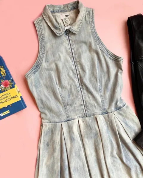 Vestido de mezclilla. Tipo acid wash, tiene cierre al frente y cierre a un costado, no estira. Mezclilla gruesa y resistente, fiel a su talla💜
