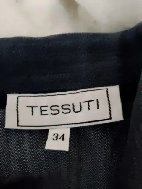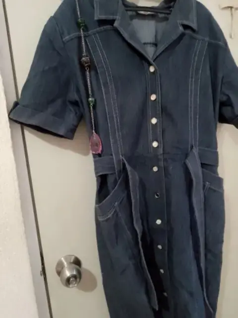 Vestido de mezclilla, marca tessuti, talla 34. Tiene cinto o fajo.