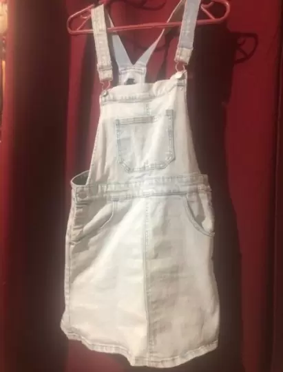 Vestido de mezclilla. Bonito vestido corto de mezclilla viene reducido dice talla L pero viene siento una talla M.Puedes armar tu paquete, el la compra de dos prendas o más serealiza descuento, solo menciona que prendas te agradan y arma tu paquete