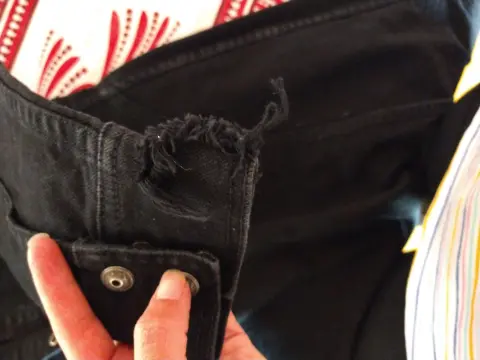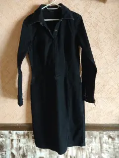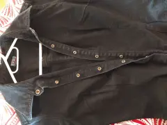 Vestido de mezclilla negro 💥. Llega hasta abajo de la rodilla con botones de presión en medio del pecho todos funcionan un pequeño detalle en la manga del brazo izquierdo que tiene solución