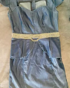 Lindo vestido casual mezclilla suave con cinturón plateado, talla M, marca Only jeans.
