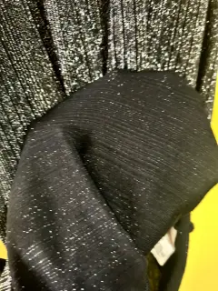 Vestido negro con plateado, ajustado al cuerpo, súper cómodo, brilla muy bonito y lo recomiendo para usar en la noche