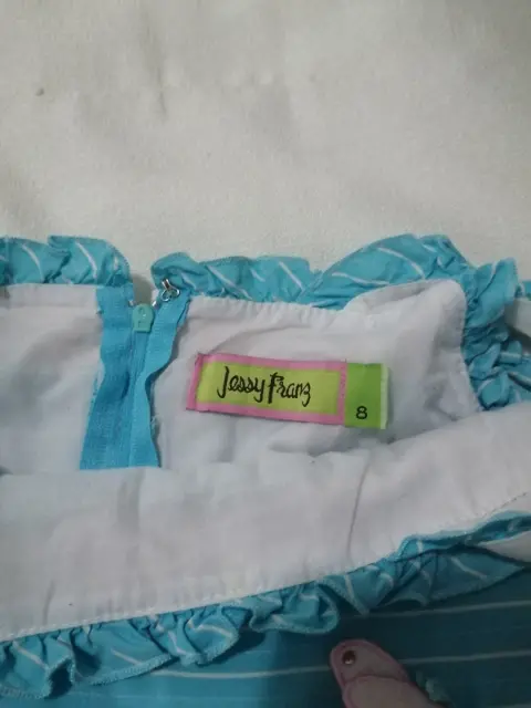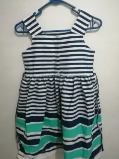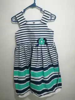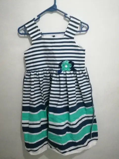 Vestido de niña. Vestido de tirantes rayado en azul marino con verde, botones en la parte de atras talla 10