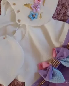 lindo vestido de niña de unicornio 2 años con saco y moño incluido