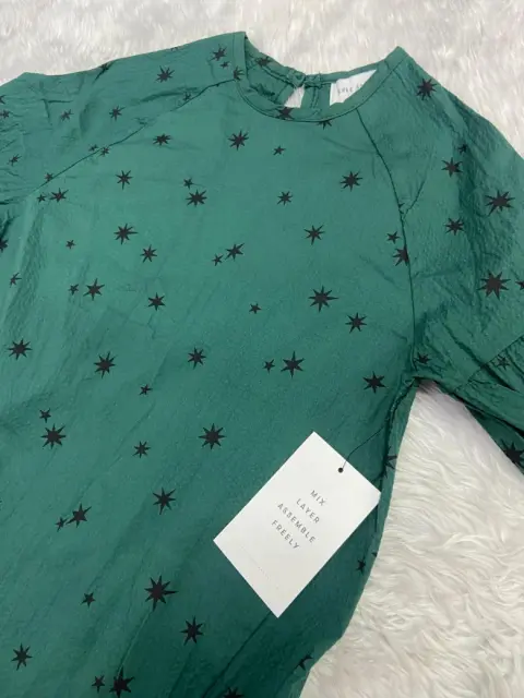 Vestido de niña. Verde con estrellas tela, fresca. Marca FREE ASSEMBLY. #10-12 AÑOS.