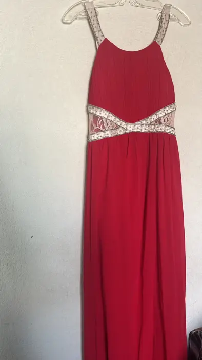 VESTIDO DE NOCHE. Vestido de nocheLargoRojo con dorado, de TirantesTela de gasa con forro de algodón muy cómodo y ligero, con bordado