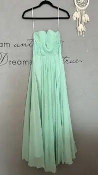 Vestido de noche. Vestido color menta, corte princesa, grapeado al frente y detalle continua en la falda.