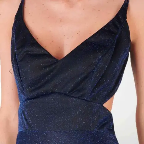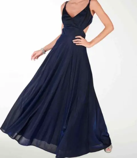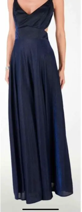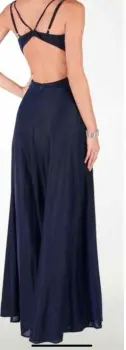 Hermosa vestido largo color azul marino con tirantes cruzados forro tul, talla chica