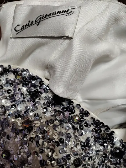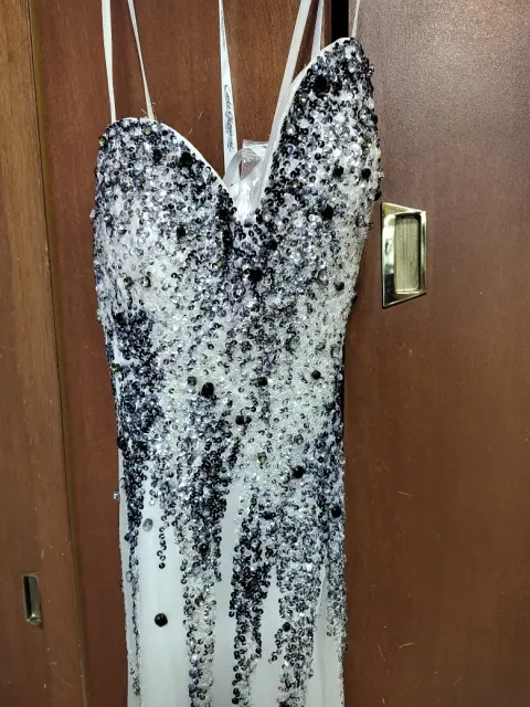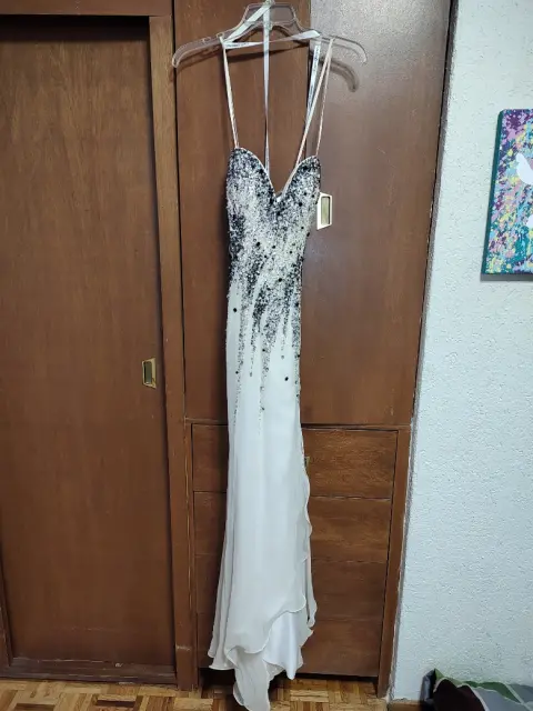Vestido de noche. Hermoso vestido blanco con pedrería en negro y plata