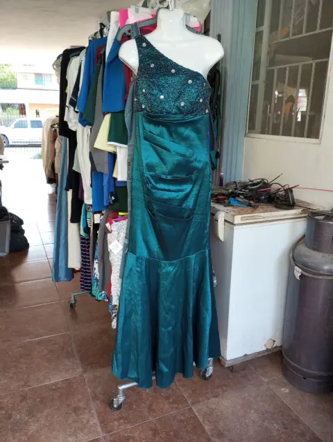 Vestido para fiesta de noche, color verde, solo se uso una vez, sin detalles