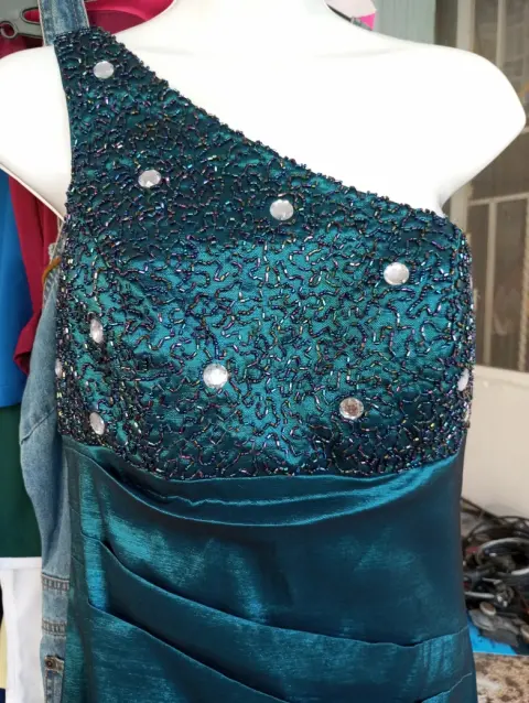 Vestido de noche. Vestido para fiesta de noche, color verde, solo se uso una vez, sin detalles