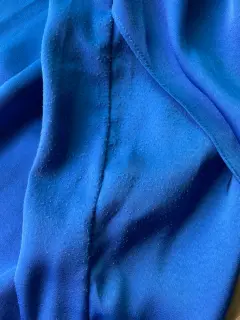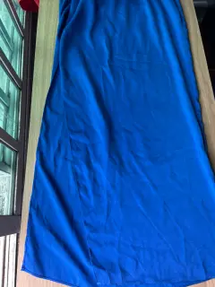 Hermoso, vestido en color azul eléctrico de un hombro al frente pliegues en el pecho. Es largo con abertura en la pierna derecha. Sólo se usó una vez, pero por el uso se huyó un poquito en las imágenes. Está el detalle.