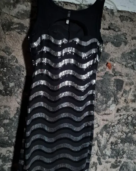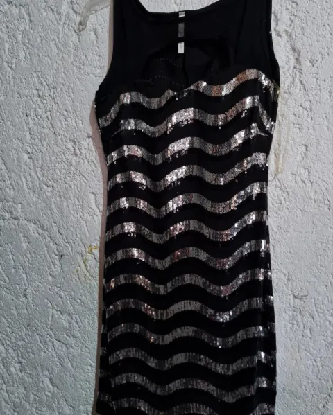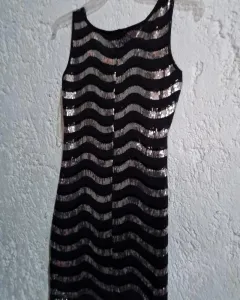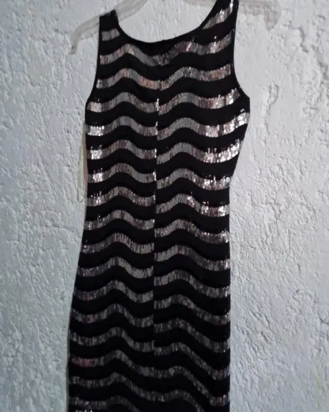 Vestido de noche. Bonito vestido para fiesta , corto de lentejuelas blanco con negro