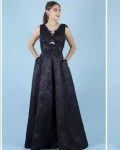 Vestido de noche. Hermoso vestido marca Reina DíazNuevo sin detallesCuenta con bolsas y apliques en la parte superior