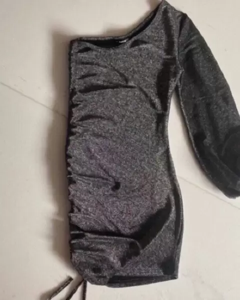 Es un vestido ajustado, hace una figura increible, nuevo, de buena calidad y de muy buen color, es de una sola manga y se ve muy bonito