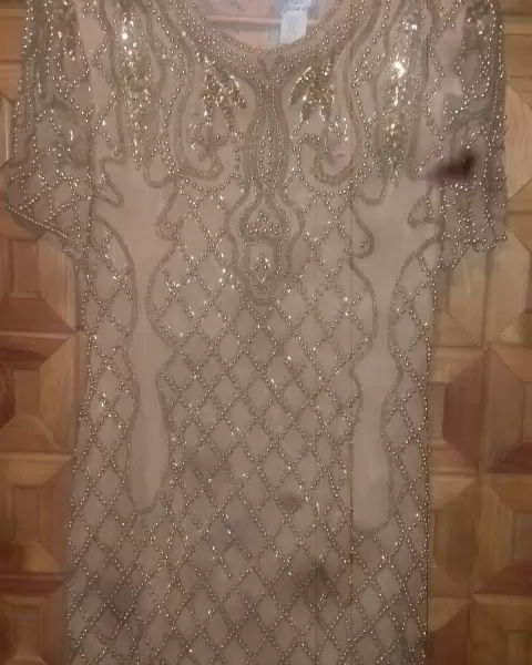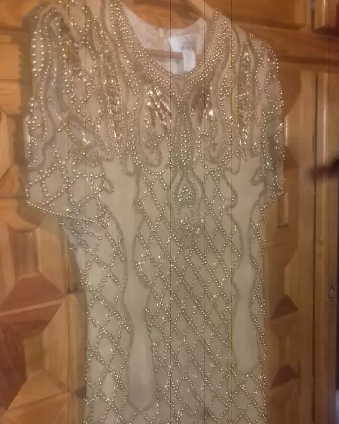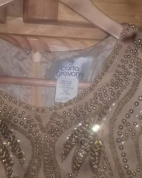 Vestido de noche, carlo Giovanni. dorado con canutillo, lentejuelas y perlas doradas.Sólo se uso una vez.