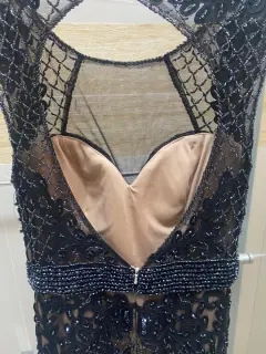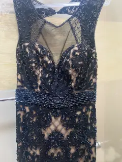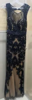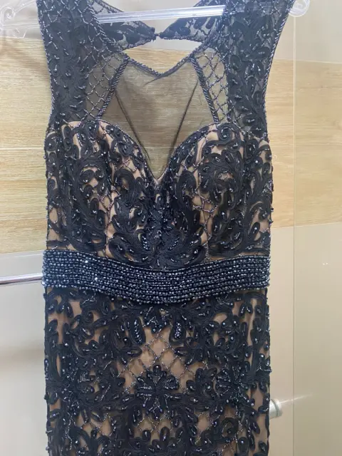 Hermoso vestido de noche, negro con beige y pedrería intacta, el vestido está comoNuevo. Talla S