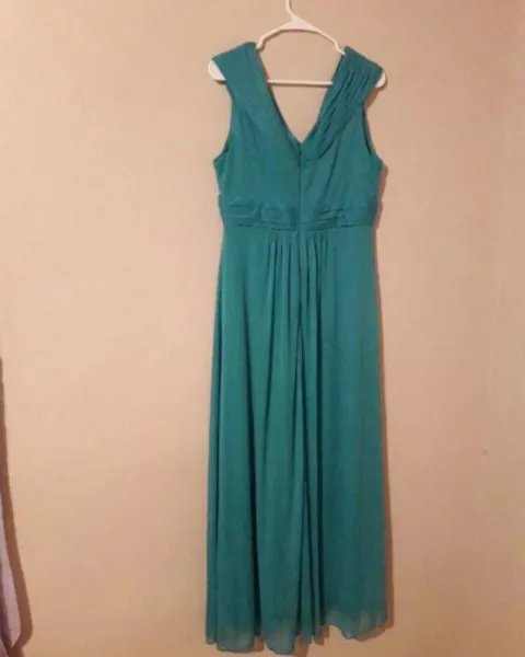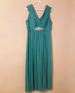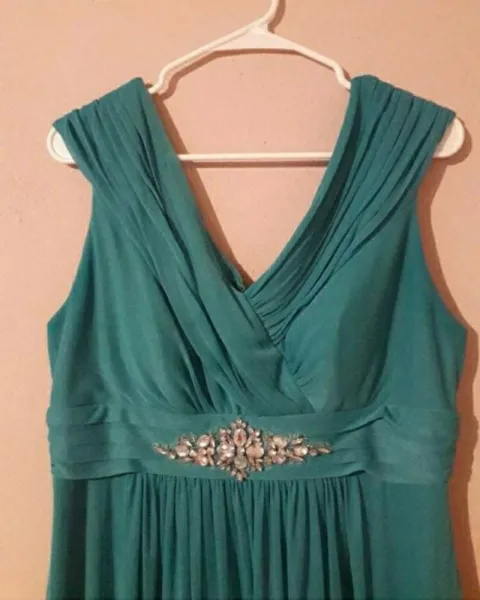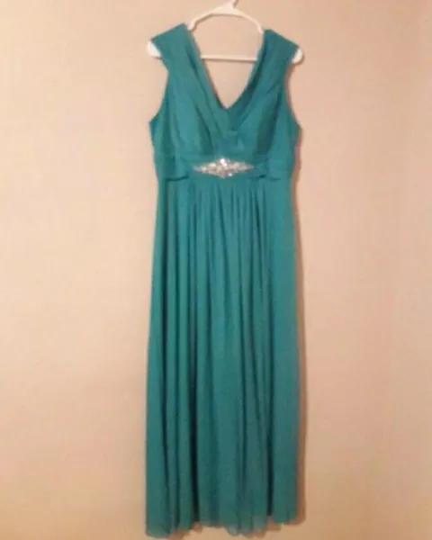 Vestido de noche color menta. Hermoso vestido color menta con diseño en la cintura de piedras talla LEl color del vestido es como en la primer foto