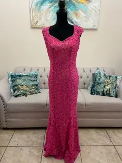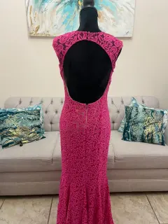 Vestido de noche color rosa fiusha en excelentes condiciones es te la de encaje si estira est allá 8 o M queda a L y tiene escote en espalda