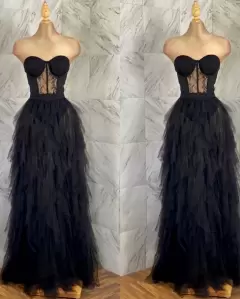 Vestido de noche con transparencias. Hermoso vestido negro con transparencias. Nuevo sin etiqueta. Talla S/M