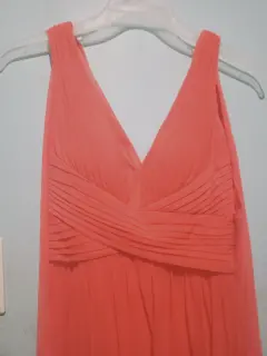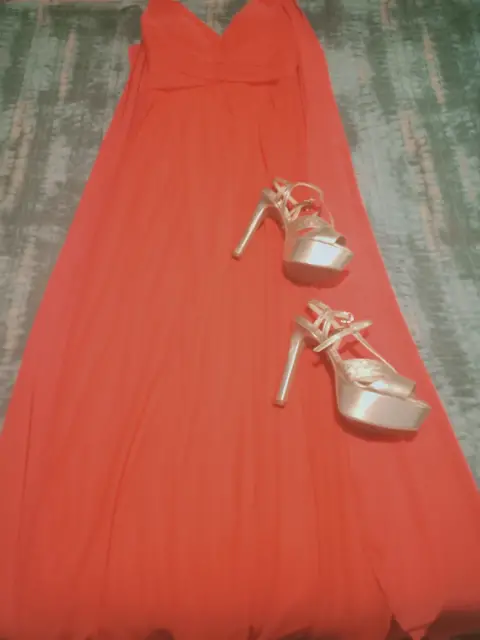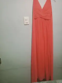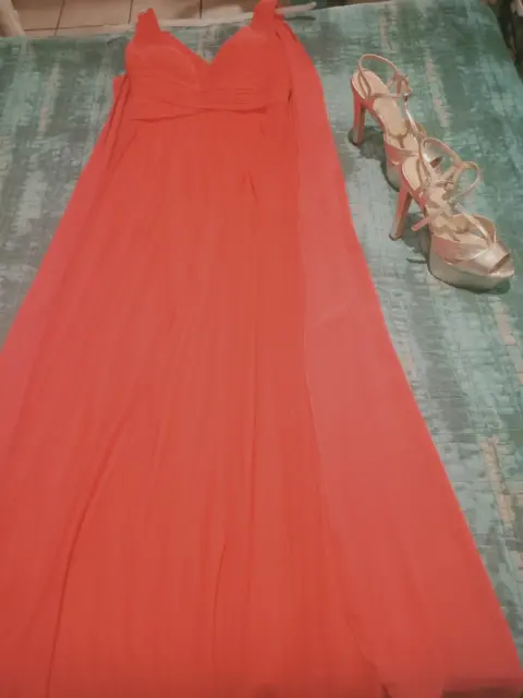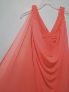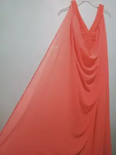 Vestido de noche divino. Hermoso vestido de noche en color coral, largo y con capa desmontable. Muy elegante para boda o XV, es talla 8 .