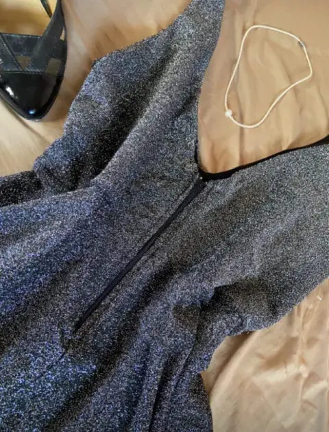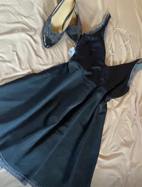 Vestido de noche NICHOLAS. Bonito vestido corto para evento de noche, cuello en v, corte A, talla M, elasticidad.