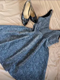 Bonito vestido corto para evento de noche, cuello en v, corte A, talla M, elasticidad.