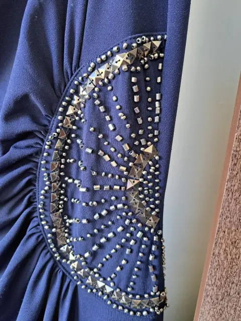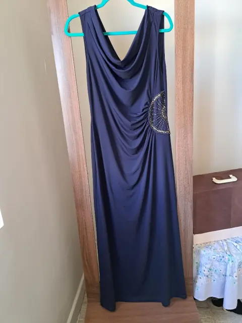 Vestido de noche XL. Vestido Spencer, azul marino, tela strech, corte muy favorecedor, sin detalle.Talla 14Largo 1.46 cmAx-Ax 64 cm
