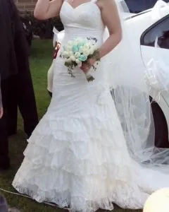 Hermoso vestido de novia hecho de hermoso encaje Casa de novias: novias de EspañaColor: Ivory Talla: 10/12Está en perfecto estado (los tirantes son desmontables).
