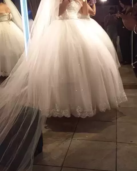 Vestido de novia no cuenta con tintorería ni con velo Es un vestido color Ivory Modelo Romina Con aro flexible y crinolina Sin mangas