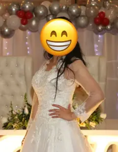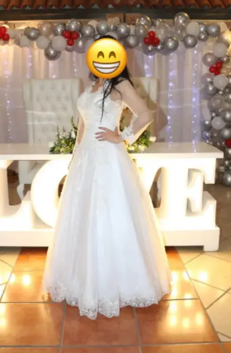 Hermoso vestido de novia Tiene pedrería en toda la parte de arriba Con mangas Incluye mantilla (velo largo) y cauda (cola) No incluye servicio de tintorería