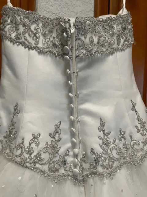 Vestido con corsé, talla 10 USA, talla 30 México; incluye crinolinas propias y adicionales dependiendo de como lo quieras usar y velo doble.