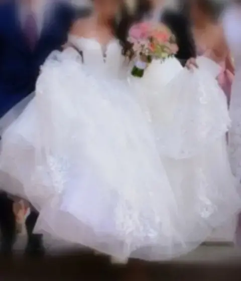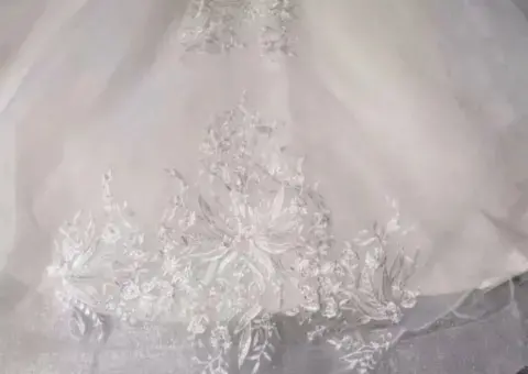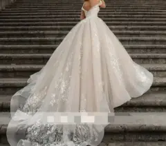 Vestido de novia estilo princesa color ivory, se uso solo en la fiesta de recepción, tiene botones y cierre en la espalda, tirantes caídos y broches para ajuste de la cauda