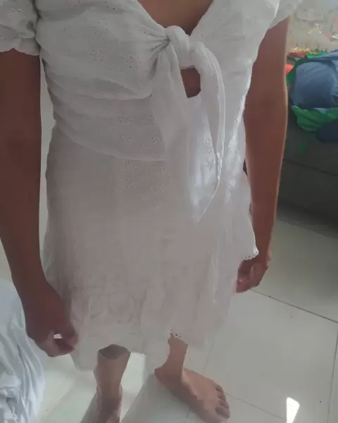 Vestido de olanes blanco. Excelente vestido talla s le amolda bien ,😊