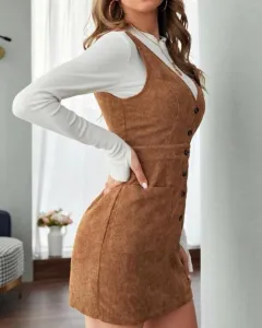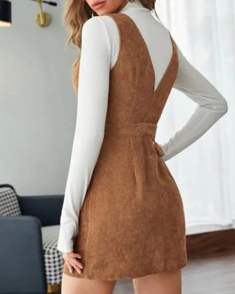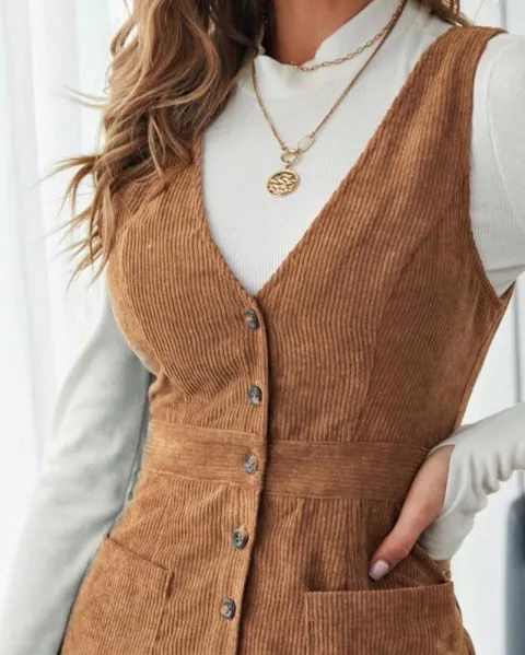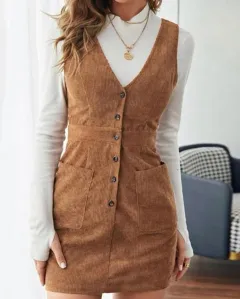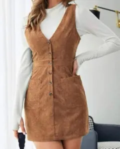 Vestido de pana con botones delanteros. Talla: S (Largo: 84.5 cm, pecho: 94.5 cm, cintura: 75 cm, cadera: 102 cm)Si te interesa un paquete házmelo saber, con gusto te lo armamos