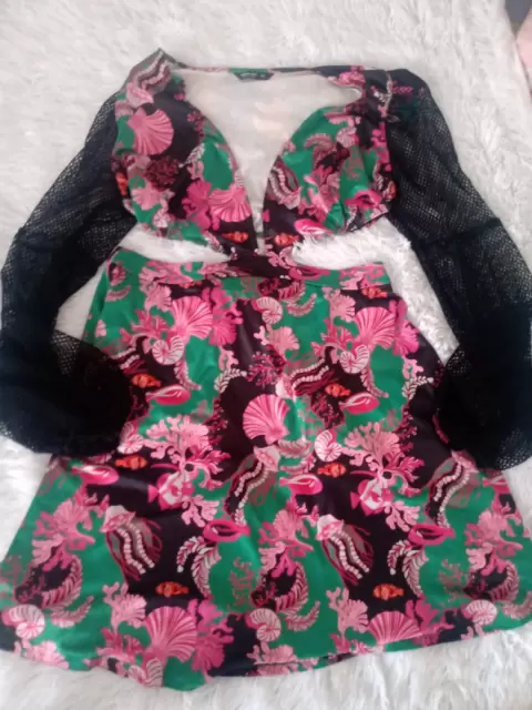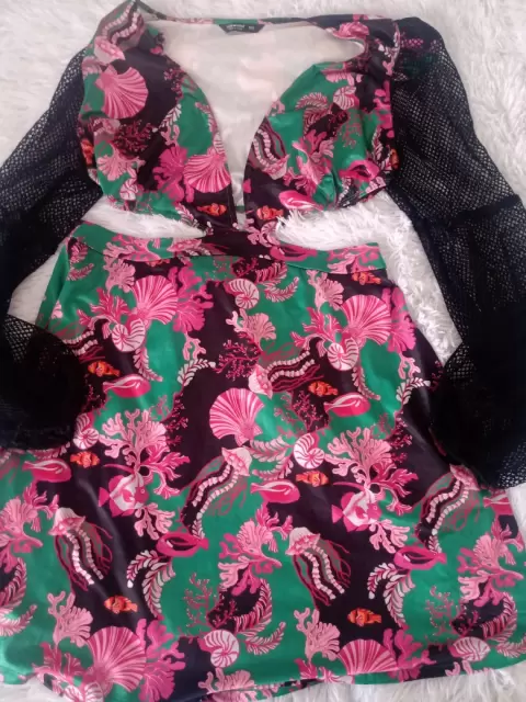 Hermoso vestido ideal para ocupar en calor en la playa, una comida, cena etc. Tela super fresca y mangas de red. Viene como 0XL