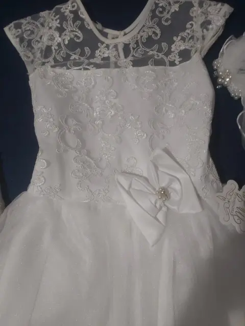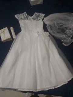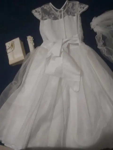 Vestido de primera comunión. Vestido blanco de primera comunión Detalles de encaje y Moño en la cintura Talla 10 añosViene reducidoNuevo