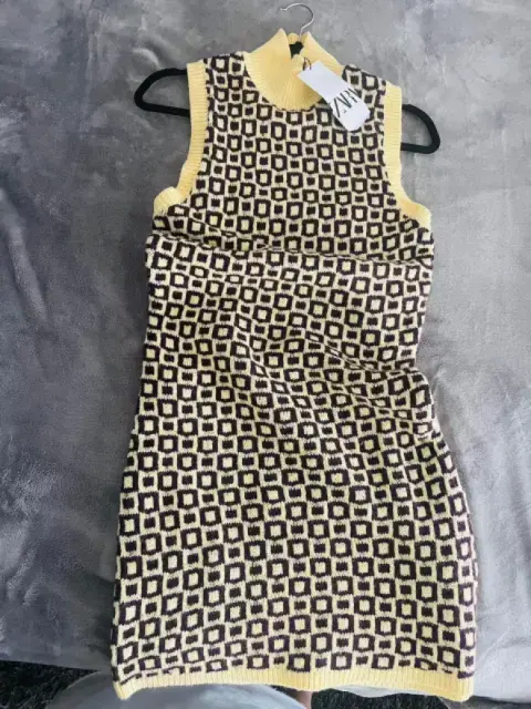 Vestido de punto. Stretch, sin mangas, recto, calientito y se puede usar formal-casual, sin cierre ni botones.