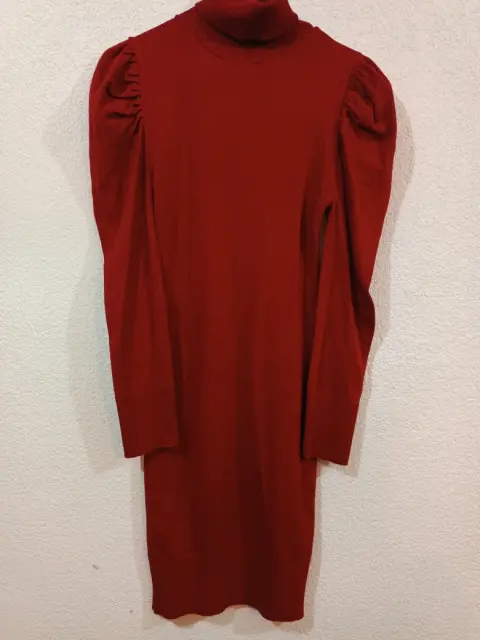 Vestido de Punto. Vestido de Punto calientito, manga de globo y cuello de tortuga, color rojo quemado.