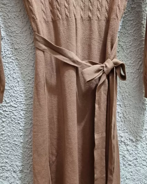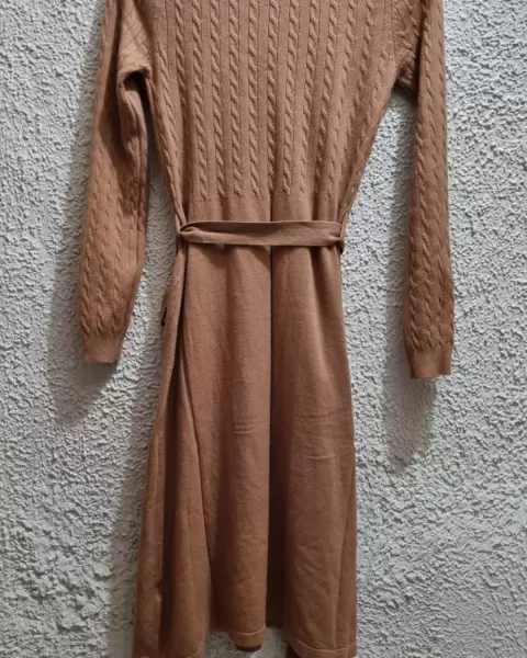 Vestido de punto café circular queda abajo de la rodilla talla s/m nuevo sin detalles.