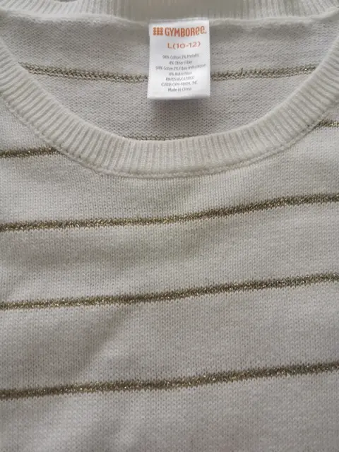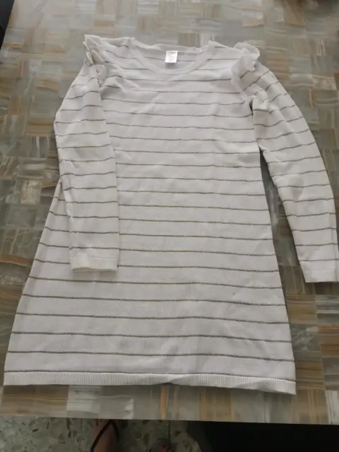 Vestido de punto niña. Hermoso vestido de punto blanco con rayas doradas, marca gymboree, talla 10/12, en buen estado