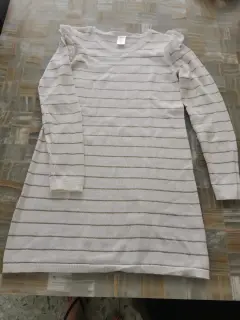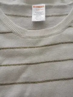 Hermoso vestido de punto blanco con rayas doradas, marca gymboree, talla 10/12, en buen estado