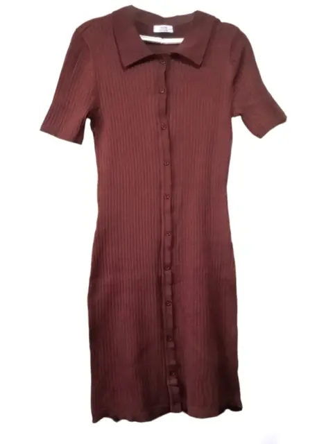 Vestido de punto y cuello polo 🤎. Hermoso vestido en tela de punto con cuello tipo polo en color cocoa 🤎 Súper fresco, bonito, favorecedor y combinable 🤎 Tiene botonadura completa. Está increíble de verdad hace super linda figura 🤎El color real es más parecido al de la foto número 6Talla M ✨