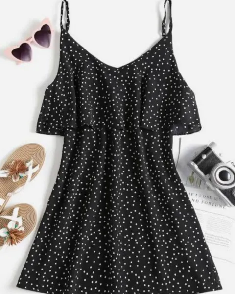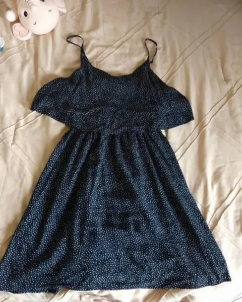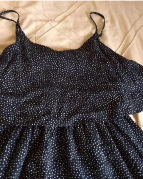 Vestido de puntos. Nuevo, tirantes ajustables, talla M, color azul marino, material: algodón