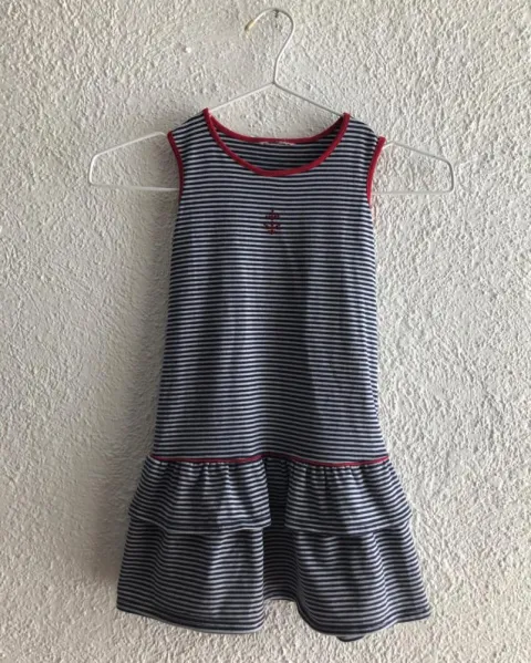 Vestido de rayas azul con blanco, largo 55cm, axila a axila 31cm, marca Push, talla 5/6