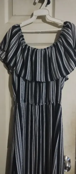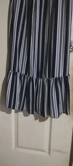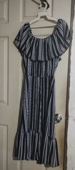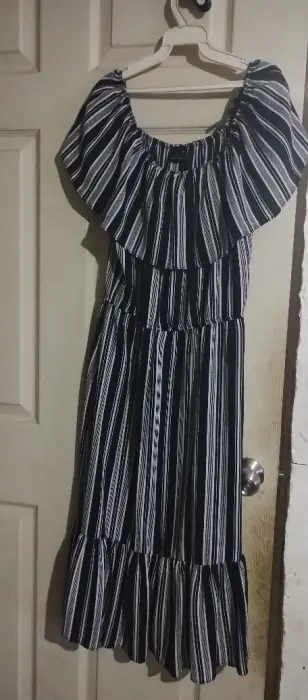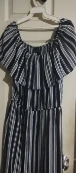 Vestido de rayas blanco y negro. Vestido de rayas que te gusta estiliza la figura... Es blanco y negro para que lo combines con cualquier color de calzado... Su olán luce muy coqueto.