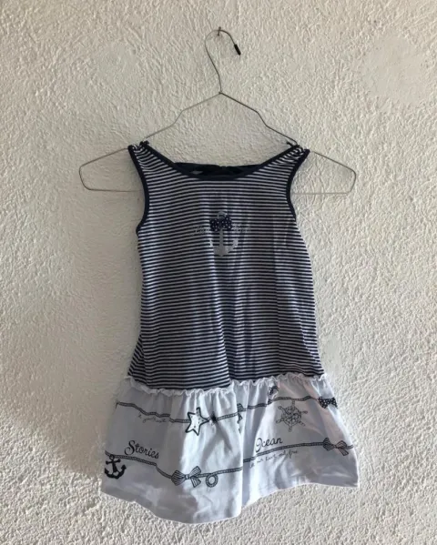 Vestido de rayas, motivos marinos