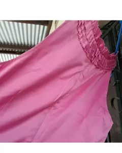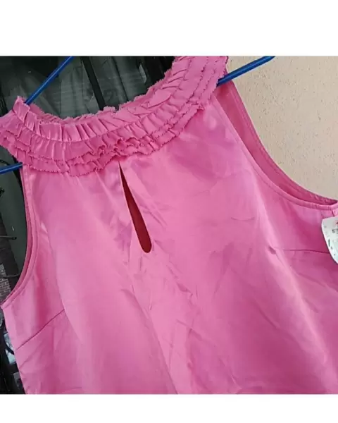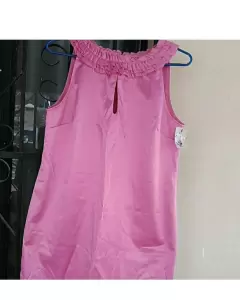 Vestido de satin rosa desmangado. Vestido rosa sin manga de fiesta talla mediana con etiqueta