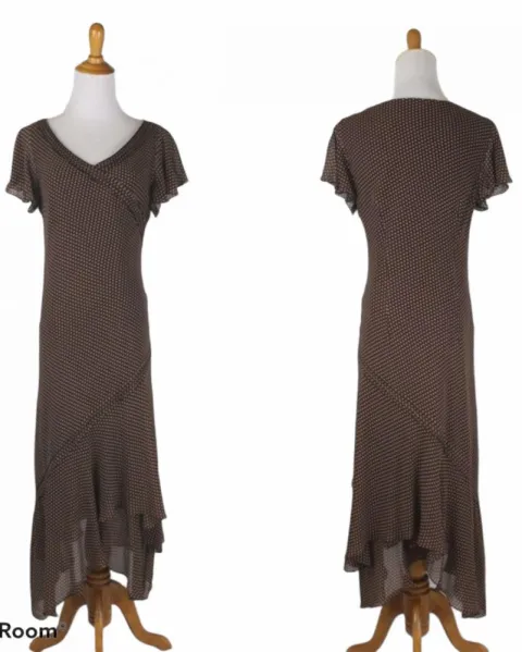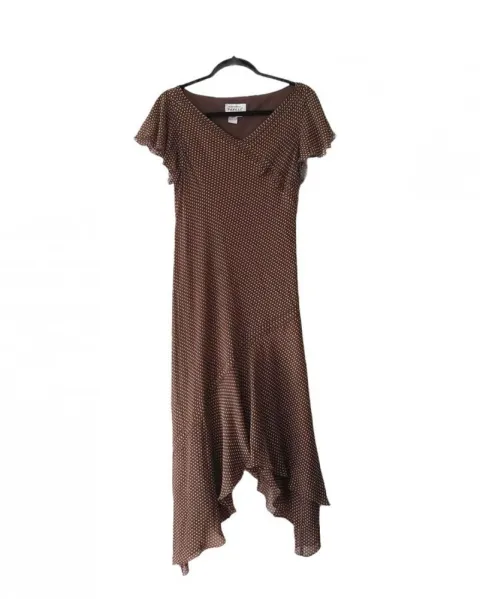 Vestido de seda Adrianna Papélle. Vestido vintage de seda corte asimétrico escote en v Adrianna Papelle talla 10 vintage que equivale a una talla S/M actual. El producto es usado en excelentes condicionesnsin detalles. Proviene de un hogar libre de humo de tabaco y mascotas.MedidasHombros: 43 cmsSisa: 52 cmsCintura: 47 cmsCadera: 56 cmsLargo: 136 cms100% algodón