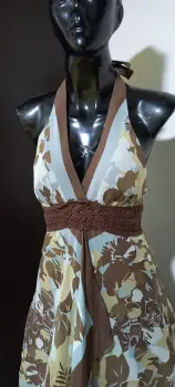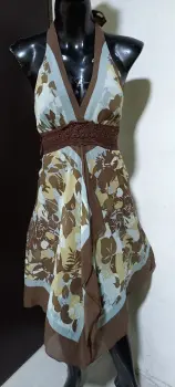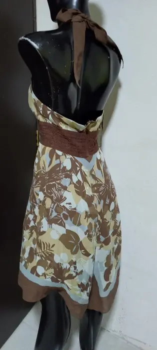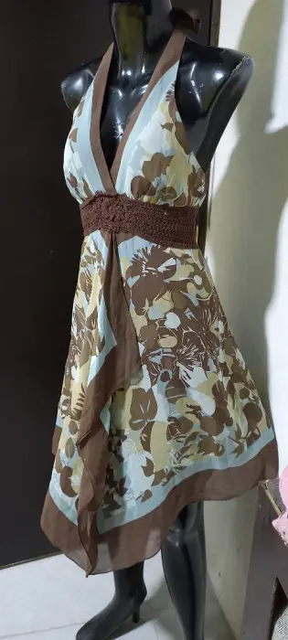 Vestido de seda fresco halter. Gracias por tu visita ..En esta ocasión te traemos:..................................................................................TALLA 2MARCA BCBGMAXAZRIA COLOR CAFE CON AZUL STRECH NO TELA SEDAMADE IN CHINAMEDIDAS HOMBRO AXILA 38 CM CINTURA 35 CM CADERA ES SUELTO LARGO 110 CM DESDE EL CUELLO ES ASIMETRICO Las medidas son de lado a lado de la prenda